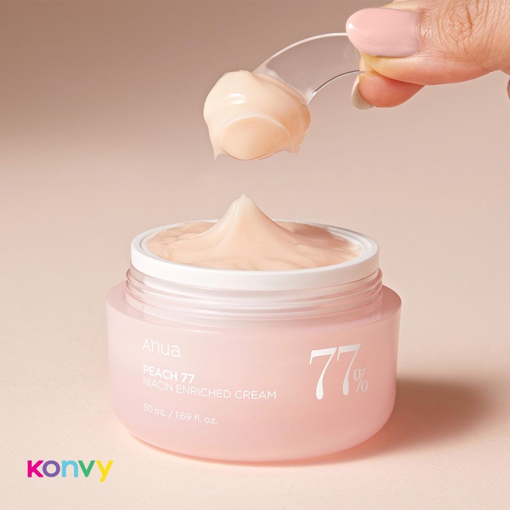 ANUA Peach 77 Niacin Enriched Cream 50 ml is a nourishing Korean moisturizer formulated with 77% peach extract and niacinamide to deeply hydrate and brighten dull skin. Its lightweight yet rich texture helps improve skin elasticity, boost radiance, and even out tone while strengthening the moisture barrier. Ideal for daily use, it leaves your complexion soft, smooth, and glowing.